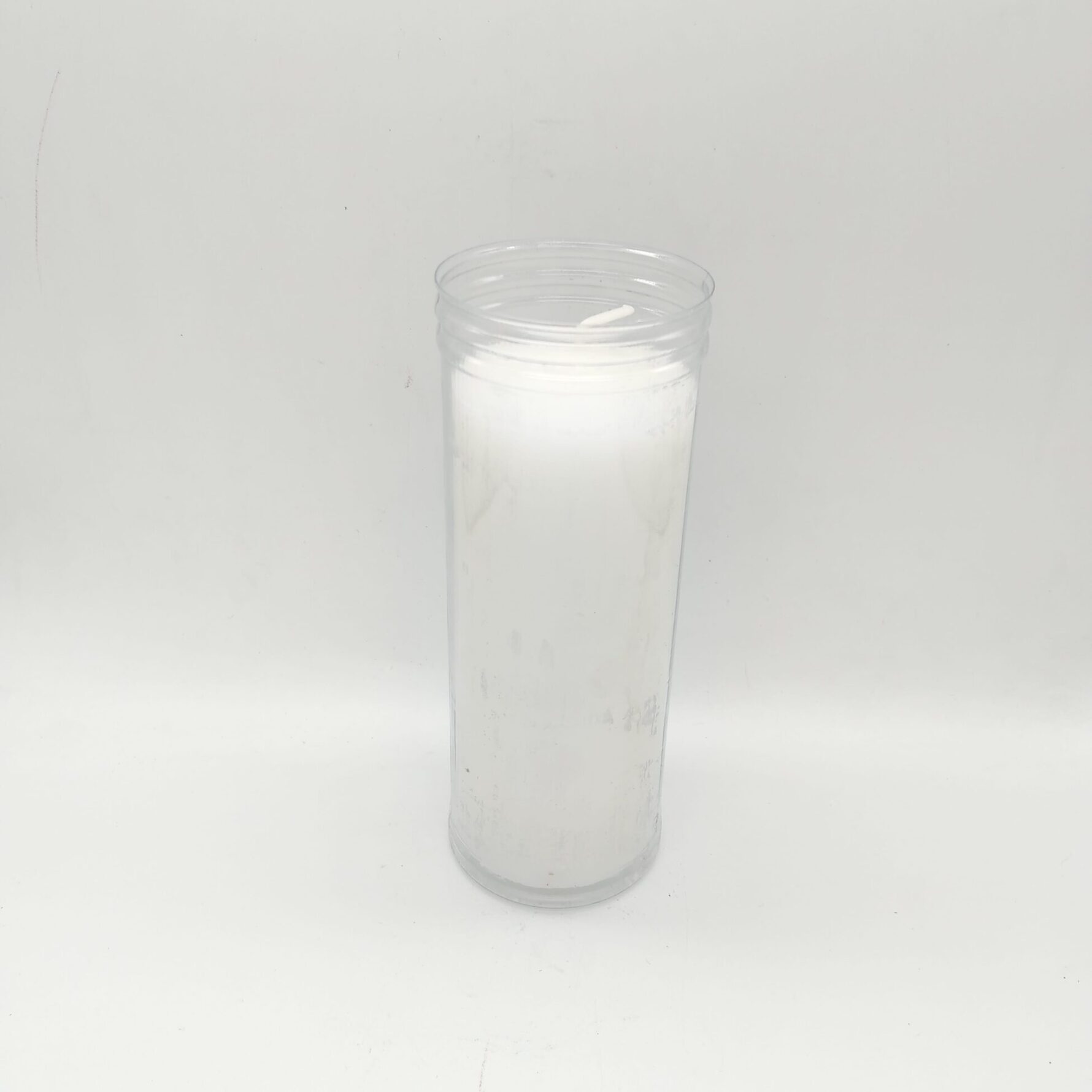Velón artesano, color macizo blanco, tres días de duración aproximadamente.